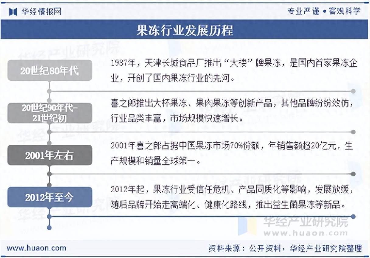 果冻行业于20世纪80年代在中国起步点金股,初期发展缓慢,后喜之郎等品牌崛起,通过创新产品和广告营销推动行业进入快速发展和巅峰期。但近年来,因质量信任问题、市场竞争加剧等,行业发展遇阻,不过也在通过产品创新和升级寻求新的发展机遇。