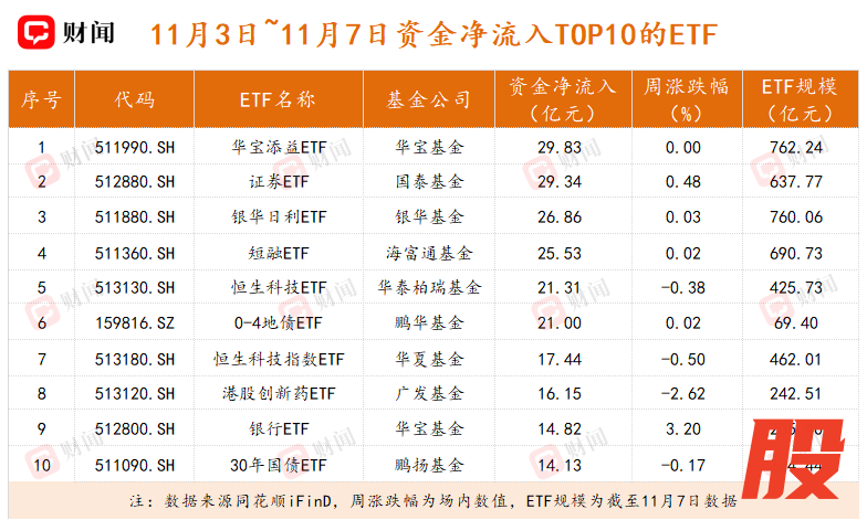四季度以来,银行板块持续反弹态势,截至11月7日收盘,中证银行指数四季度以来的涨幅达到7.34%;上周(11月3日至11月7日),中证银行指数涨幅为2.83%。伴随着银行板块估值修复和资金的青睐,银行ETF(512800.SH)单周规模增长超20亿元。