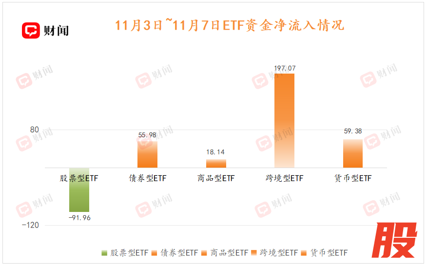 在市场整体震荡的情形下,股票型ETF成为上周唯一资金净流出的ETF类型,而形成鲜明对比的是,跨境型ETF却吸引了高达197.07亿元的资金流入。