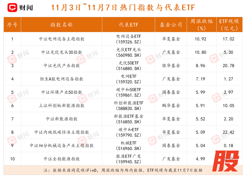 能源领域持续升温,尤其是电力设备行业表现突出。在板块上涨的影响下,电网设备ETF(159326.SZ)、光伏ETF龙头(560980.SH)等ETF涨幅居前。