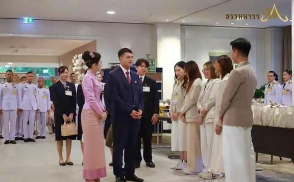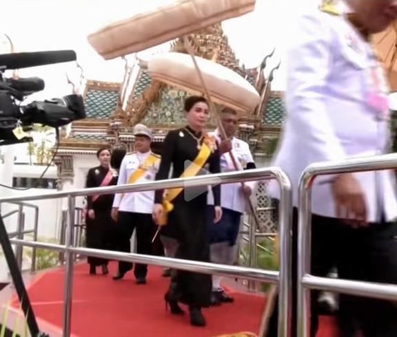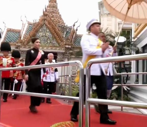 王室成员们一起走进大皇宫的时候,提帮功王子紧紧跟在苏提达王后的身后。